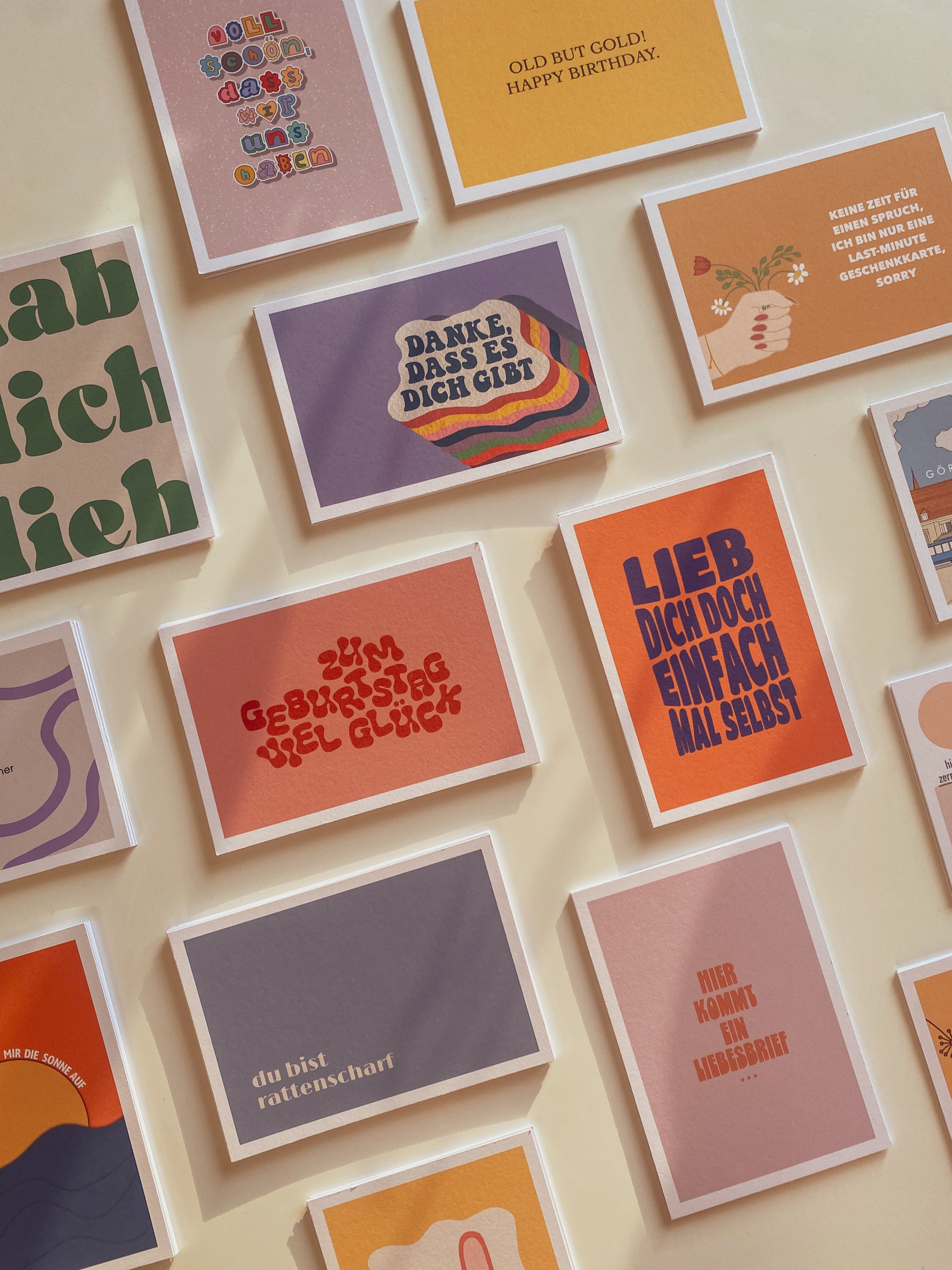 Jedes unserer Designs ist 100 % handgemacht – von der ersten Idee, über die Zeichnung, bis zum finalen Druck und Zuschnitt. Kein Massenprodukt, kein anonymer Prozess. Hier spürst du die Liebe zum Detail in jedem Strich und jeder Farbwahl. Gemeinsam möchten wir die Welt ein bisschen persönlicher und herzlicher machen - dafür steht Grußartig.