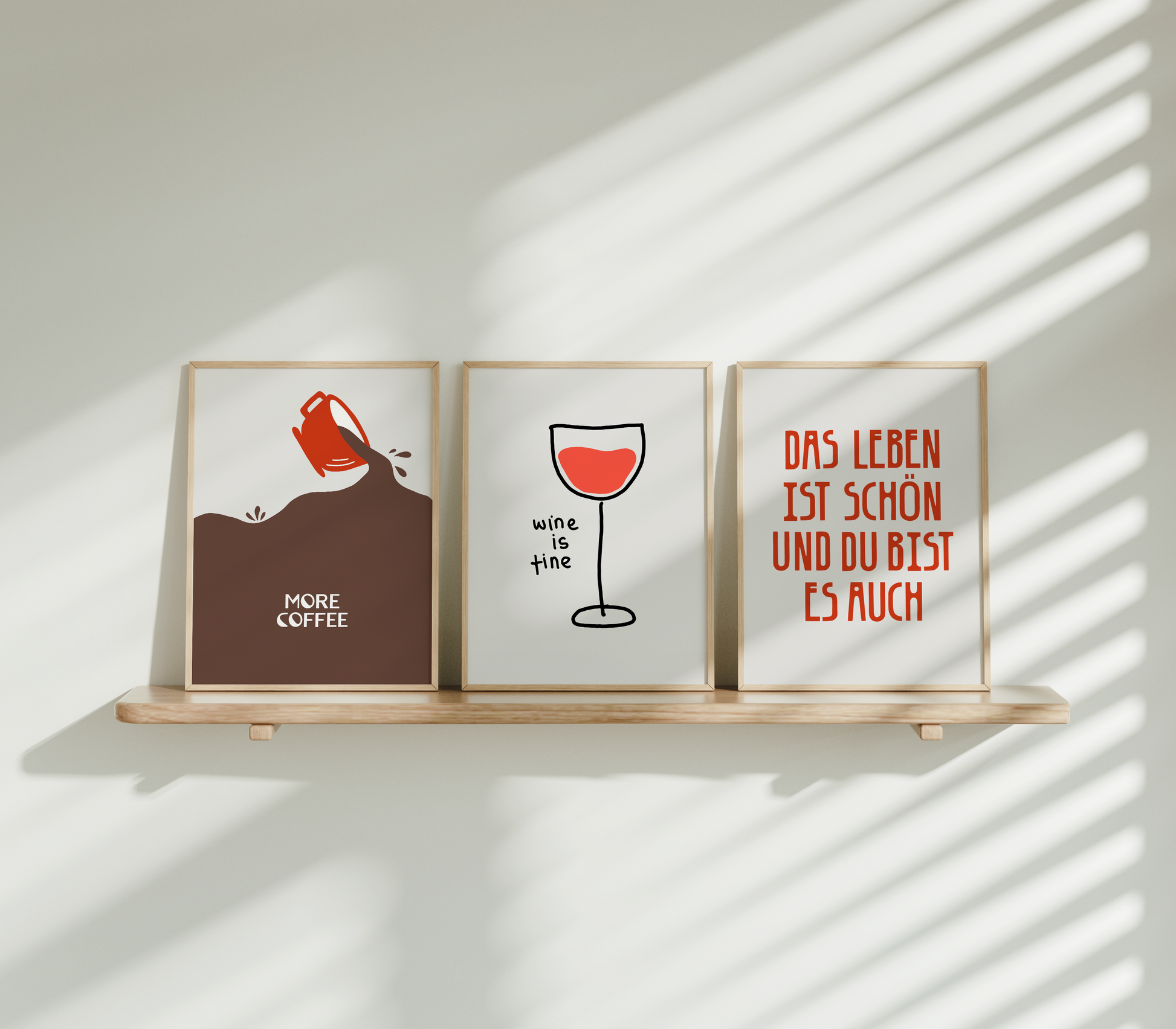 Dieses 3er-Poster-Set bringt stilvollen Genuss und positive Vibes direkt in deine Küche. Mit harmonischer Farbwelt und modernem Design verwandelt dieses Set deine Küche in einen Ort voller Genuss, Wärme und Lebensfreude.
