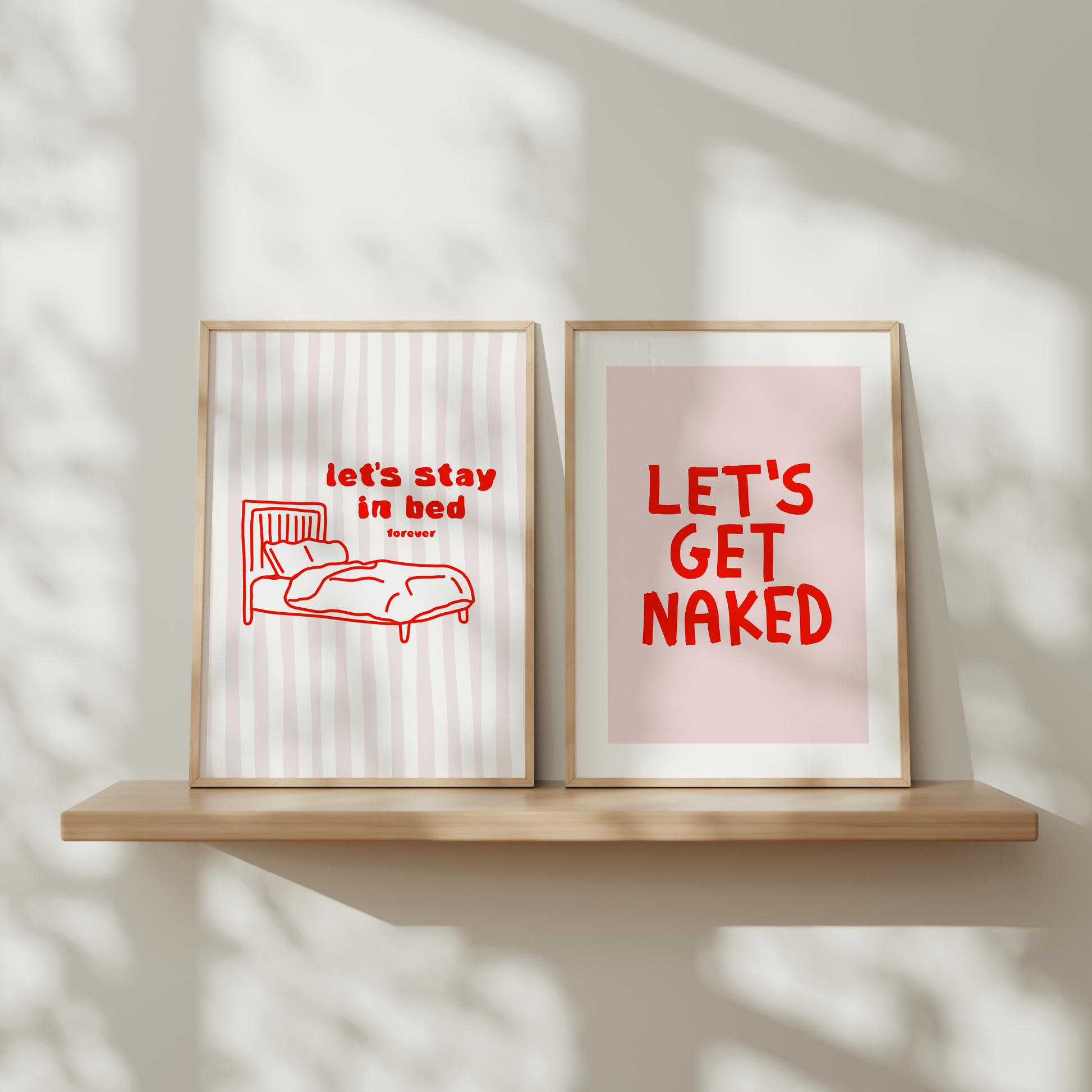 Dieses 2er-Poster-Set fürs Schlafzimmer verbindet Humor, Liebe und entspannte Vibes – in warmen Rosa- und Rottönen, die sofort Gemütlichkeit schaffen. Das Set bringt mit seinem modernen Design und der frechen Attitüde genau die richtige Portion Spaß und Zuneigung ins Schlafzimmer – cozy, stylish und zum Schmunzeln.