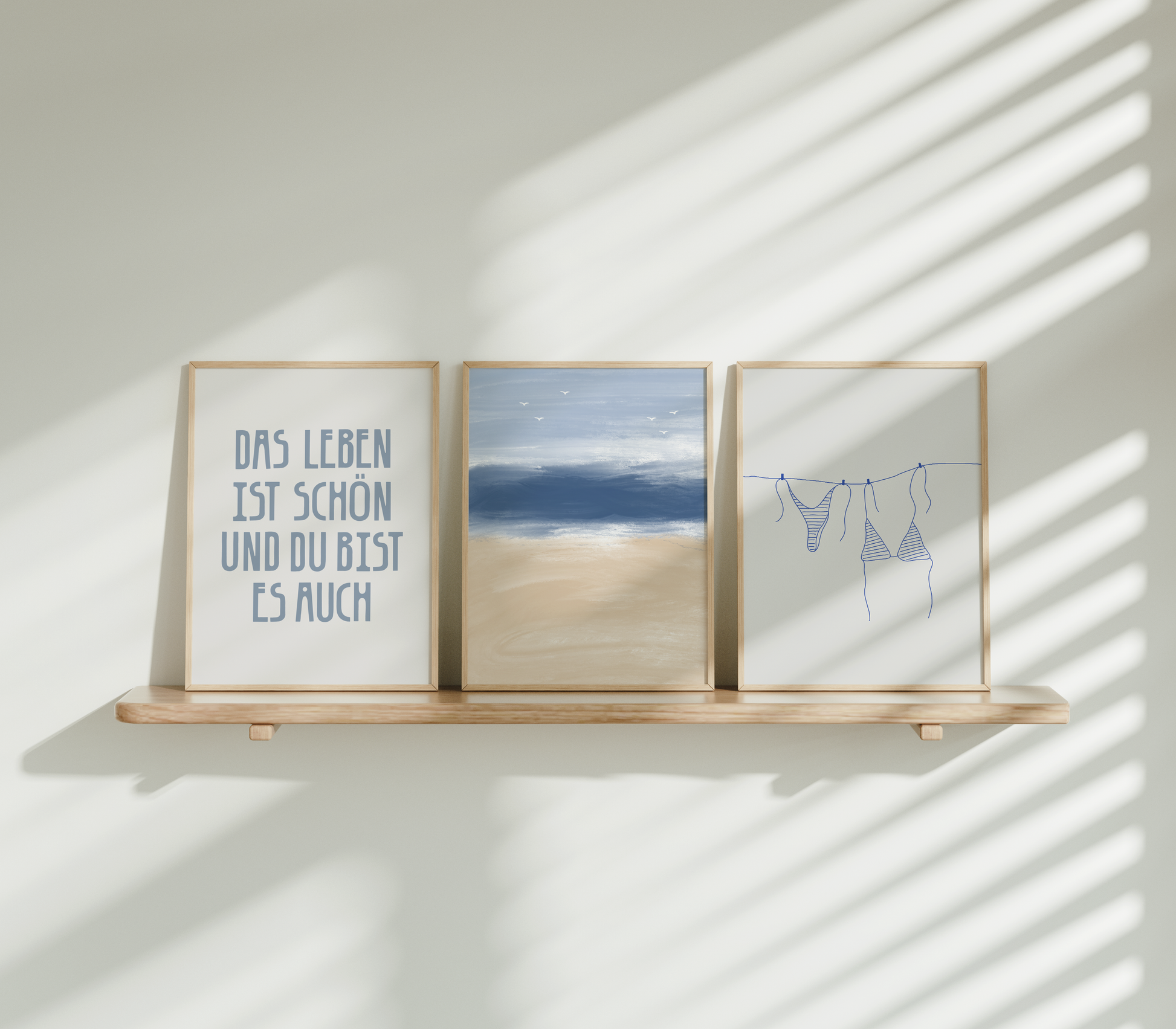 Dieses Poster-Set schreit nur so vor good vibes im Sommer – leicht, frei und voller Lebensfreude. Mit minimalistischen Illustrationen von Bikini, Strandmomenten und Sonnenstrahlen fängt es die Essenz eines unbeschwerten Sommertags ein. Ergänzt wird das Set durch einen inspirierenden Spruch wie, der daran erinnert, das Leben in vollen Zügen zu genießen.