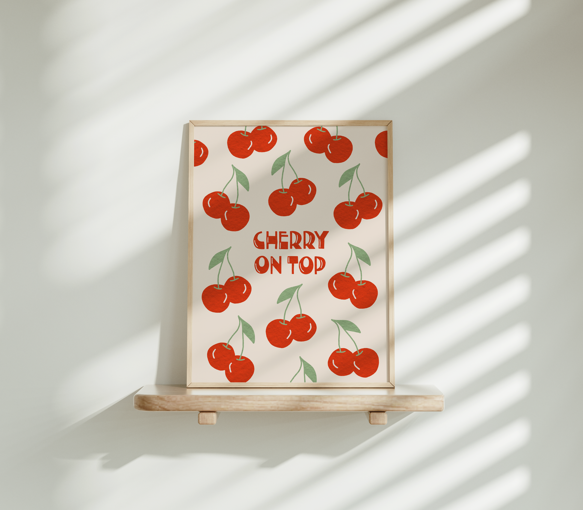 Verleih deiner Küche mit diesem entzückenden Poster, das eine Fülle von saftigen Kirschen zeigt, einen herrlich süßen und charmanten Akzent. Die lebendigen Farben und die köstlichen Details der Kirschen bringen das Gefühl von Frische und Genuss in deine Küche. Mit dem Spruch 'Cherry on top' wird dieses Poster zum i-Tüpfelchen deiner Einrichtung und erinnert daran, dass die kleinen Freuden im Leben oft das Größte sind.