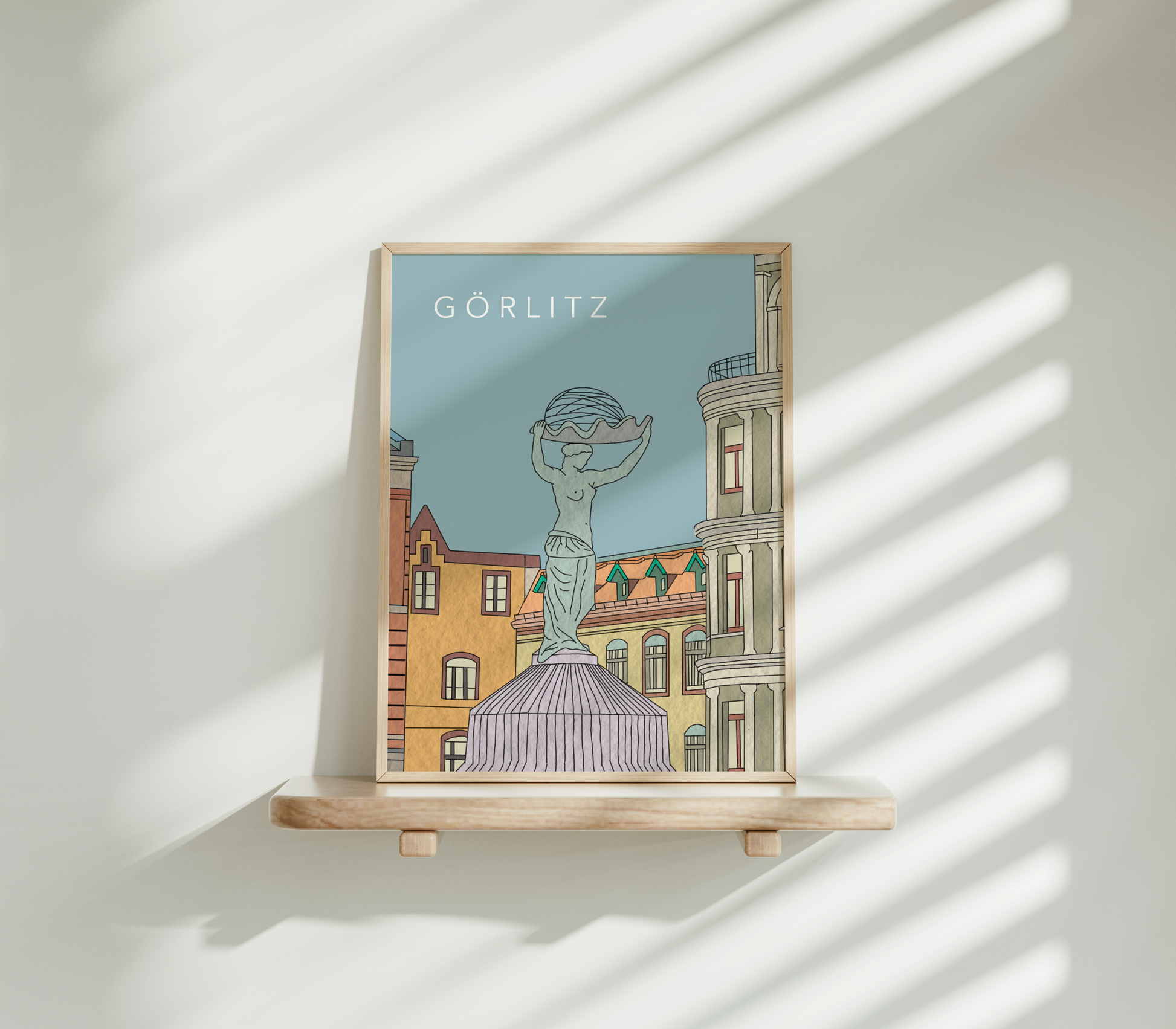 Dieses Poster mit der bezaubernden Muschelminna von Görlitz ist ein perfektes Stück, um das Heimatgefühl zu wecken oder die Liebe zu Görlitz zu zelebrieren. Mit ihrem Charme und ihrer Geschichte verkörpert sie die Schönheit und Einzigartigkeit dieser Stadt auf wundervolle Weise.