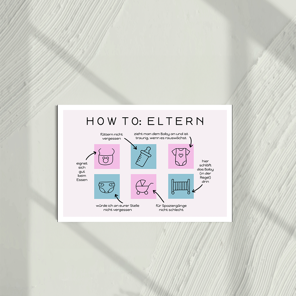 Diese Karte ist nicht nur eine liebevolle Botschaft, sondern auch ein humorvoller Ratgeber. Macht (werdenden) Eltern eine Freude und schenkt ihnen neben herzlichen Glückwünschen auch ein wenig humorvolle Unterstützung auf ihrem Weg.