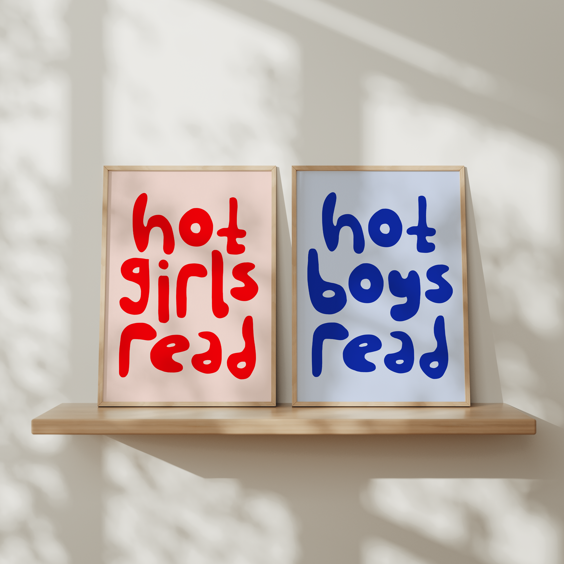 Dieses bold 2er-Poster-Set ist ein stylisches Statement für Book-Lovers mit Attitude. Hot Boys Read in kräftigem Blau und Hot Girls Read in leuchtendem Rot. Zwei klare Botschaften, die Selbstbewusstsein, Humor und Liebe zu Büchern vereinen.
